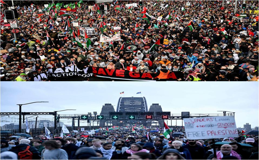 آسٹریلیا میں فلسطین کے حق مظاہرہ، سڈنی ہاربر برج پر عوام کا سمندر اُمڈ آیا