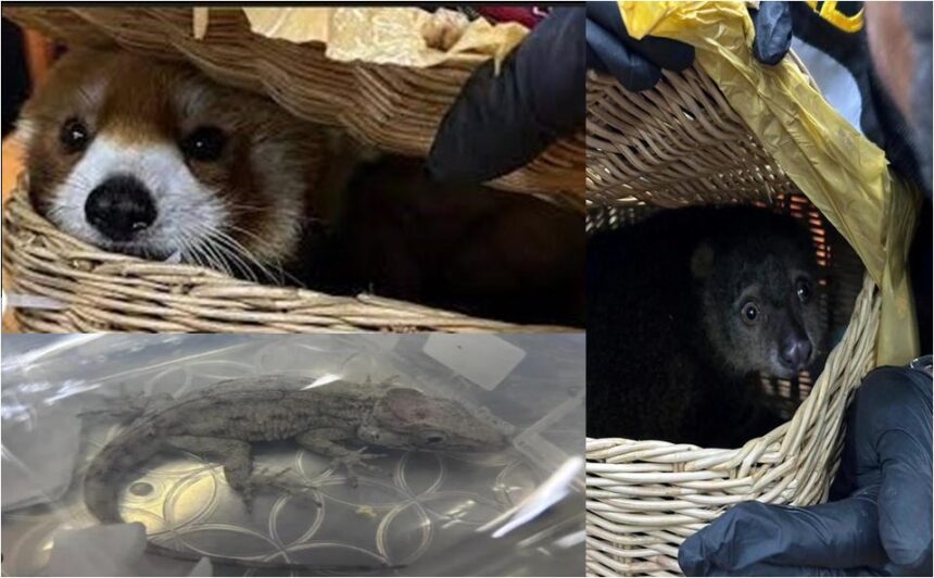 کسٹم حکام کی جانب سے ٹوکری میں بند ریڈ پانڈا کی تصویر جاری کی گئی ہے جس کی نسل خطرے سے دوچار ہے۔