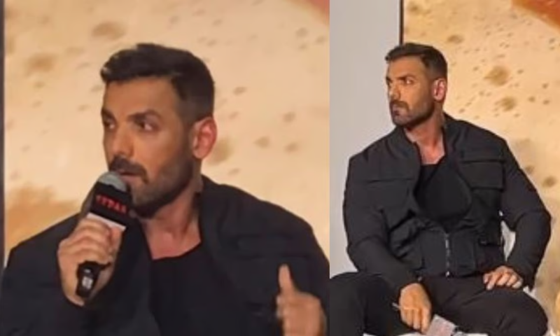 تقریب میں موجود صحافی نے جان ابراہم سے سوال کیا کہ ’ آپ کی نئی فلم ویدا کا ٹریلر اچھا ہے، اس سے قبل ہم نے آپ کی ‘ستیامیو جیتے’ پھر اسی فلم کا پارٹ ٹو دیکھا اور پھر ’پٹھان ‘ آئی جس نے اچھا بزنس کیا لیکن ہم دیکھ رہے ہیں آپ لگاتار ایک ہی طرح کے یعنی ایکشن کردار کر رہے ہیں ؟ایسا کیوں ؟ آپ کچھ نیا لائیے۔