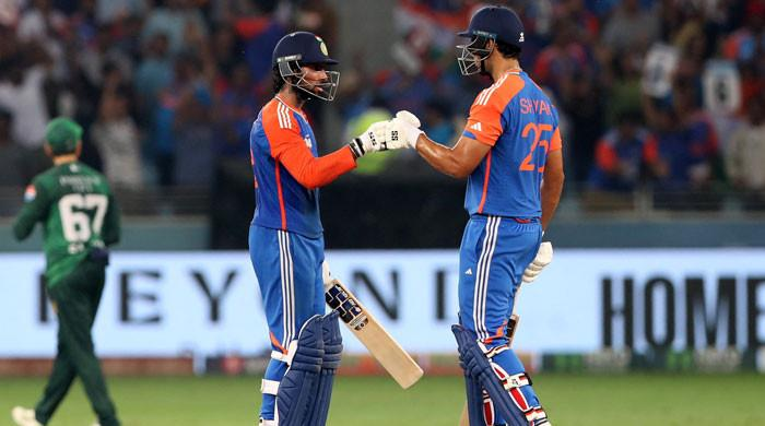 ہدف کے تعاقب میں بھارت کی بیٹنگ لائن کو مشکلات کا سامنا رہا۔ بھارت کی پہلی وکٹ دوسرے اوور میں گری جب ابھیشک شرما فہیم کی گیند پر 5 رنز بنا کر آؤٹ ہوئے۔ بھارت کی دوسری وکٹ 10 کے اسکور پر گری جب بھارتی کپتان سوریا کمار یادیو ایک رنز بنا کر شاہین کا شکار بنے۔
