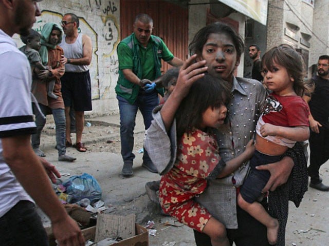 سوشل میڈیا پر اسرائیلی بمباری کے بعد کی خون ریز تصاویر اور ویڈیوز سامنے آگئیں۔ کمرے اور راہداریاں فلسطینیوں کی لاشوں سے بھرے ہوئی ہیں جن میں سے متعدد بچے ہیں۔