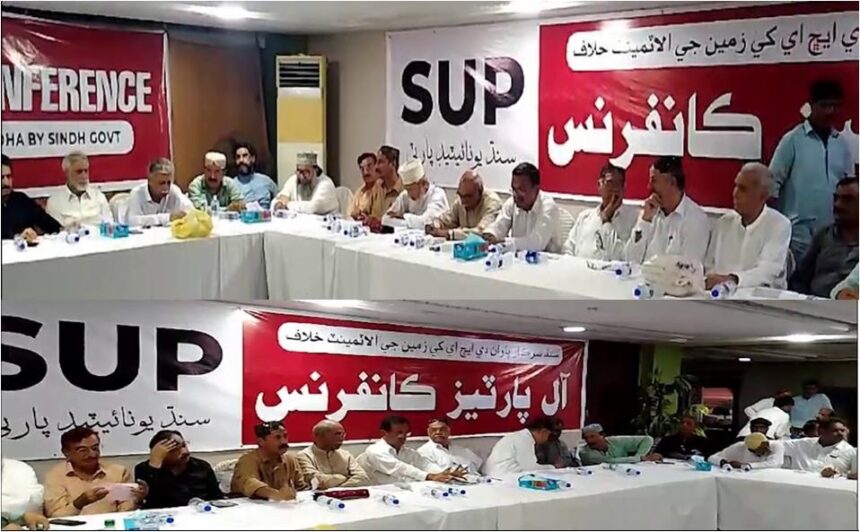 کراچی:ہاکس بے کی زمین DHA کو دینے کیخلاف سندھ یونائیٹڈ پارٹی کیجانب سے آل پارٹیز کانفرنس کا انعقاد، زمین مقامی لوگوں کو دینے کا مطالبہ