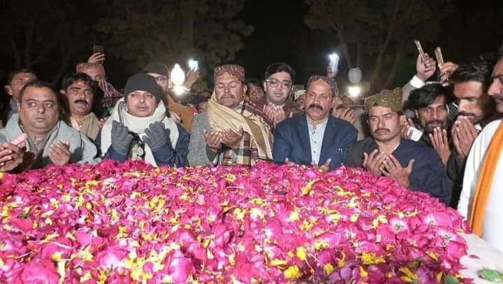 سندھ یونائیٹڈ پارٹی کے چیئرمین سید جلال محمود شاہ، سید زین شاہ، ڈاکٹر سید ضیا شاہ، سید بدرالزمان شاہ جونیئر جی ایم سید روشن برڑو اور دیگر نے سائیں جی ایم سید کی 119ویں سالگرہ کا کیک کاٹ کر تقریب کا آغاز کیا.