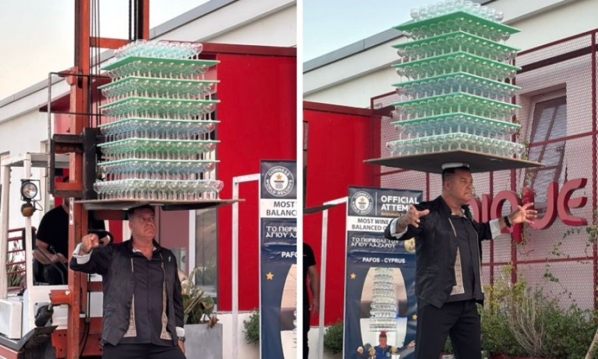 قبرص (ویب ڈیسک): قبرص سے تعلق رکھنے والے 64 سالہ سائبریٹ نے 15 سیکنڈ تک سر پر 511 گلاس کا توازن قائم کر کے گینیز ورلڈ ریکارڈ دوبارہ حاصل کر لیا۔ارسطوطالیس ویلاؤرِٹس (جو کہ ایک پیشہ ور گلاس ڈانسر ہیں) نے یہ ریکارڈ مجموعی طور پر 63.04 کلوگرام وزن سر پر اٹھا کر قائم کیا۔ ان کے سر پر گلاس کو تہہ در تہہ شیٹس پر ایک بلاک میں ترتیب دی گئی تھی۔