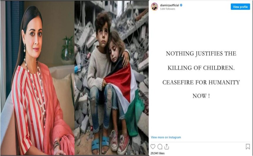 دیا مرزا نے کہا کہ بطور ماں اور ایک انسان وہ سمجھتی ہیں کہ اس ہولناک جنگ کو رکنا چاہیے اور انسانیت کو بچانے کے لیے جنگ بندی ہونی چاہیے۔