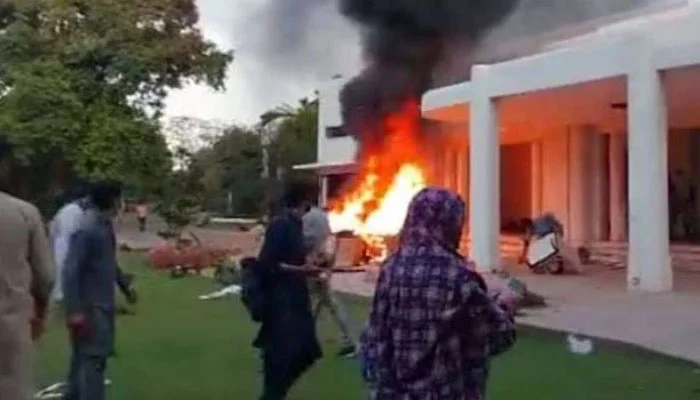پی ٹی آئی کارکنوں نے جناح ہاؤس لاہور سمیت فوجی تنصیبات، تاریخی عمارتوں، سرکاری املاک اور گاڑیوں کو آگ لگا دی تھی، ان واقعات میں ملوث ملزمان کے خلاف آرمی ایکٹ اور آفیشل سیکرٹ ایکٹ کے تحت ٹرائل جاری ہے۔
