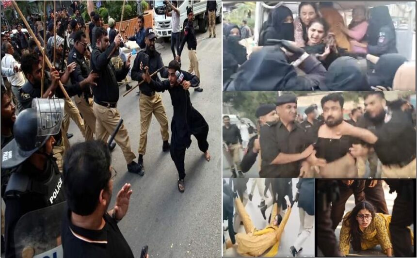 کراچی پریس کلب کے باہر مظاہرین، خواتین اور صحافیوں پر تشدد؛ ایس ایچ او سمیت 8 پولیس اہلکار معطل