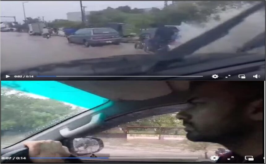 سوشل میڈیا پر وائرل ویڈیو میں دیکھا جاسکتا ہے کہ وہاب ریاض اسپیڈ میں گاڑی چلا رہے ہیں جس سے موٹر سائیکل پر جانے والے فیملی اور دیگر پر پانی آرہا ہے۔
